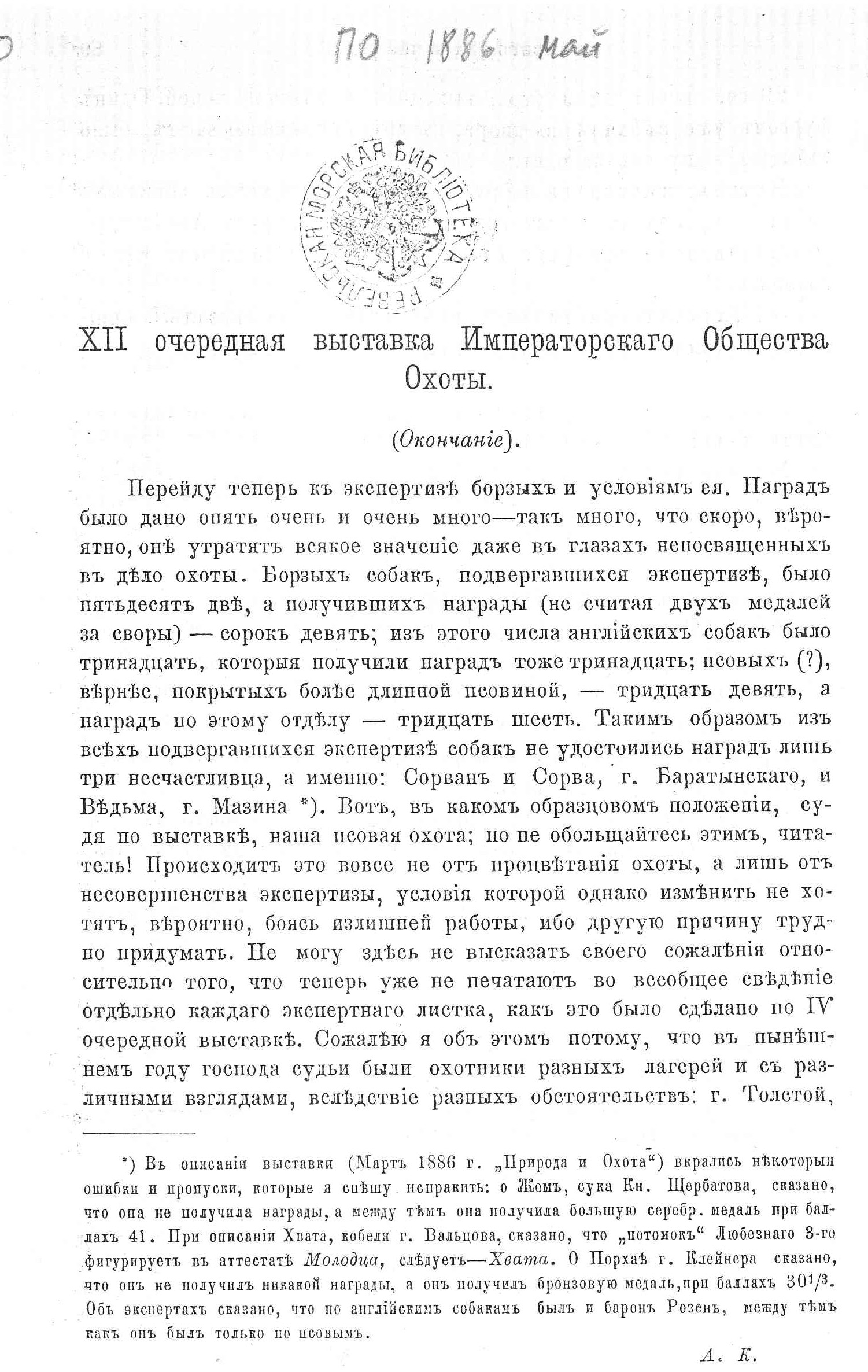 \ 12-ая выставка ИОО. 1886г.