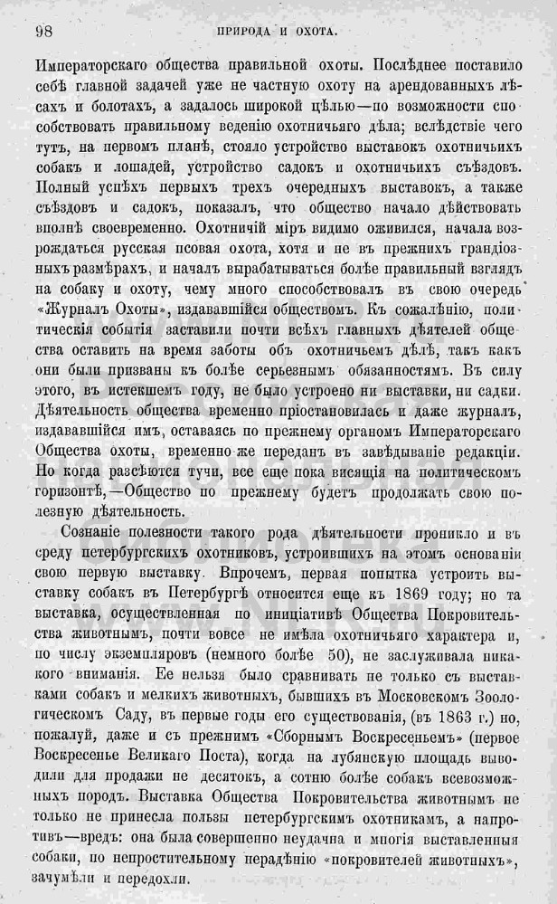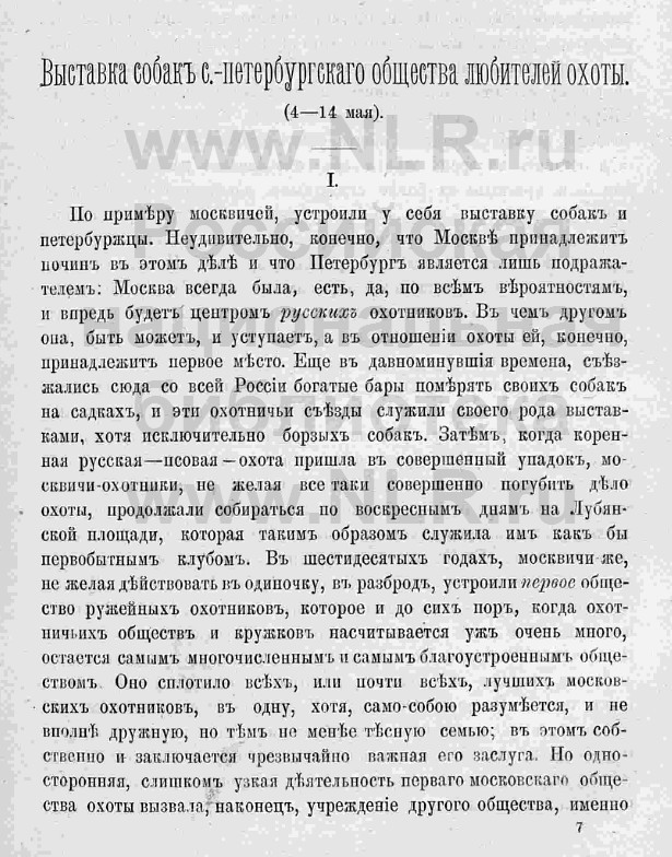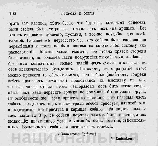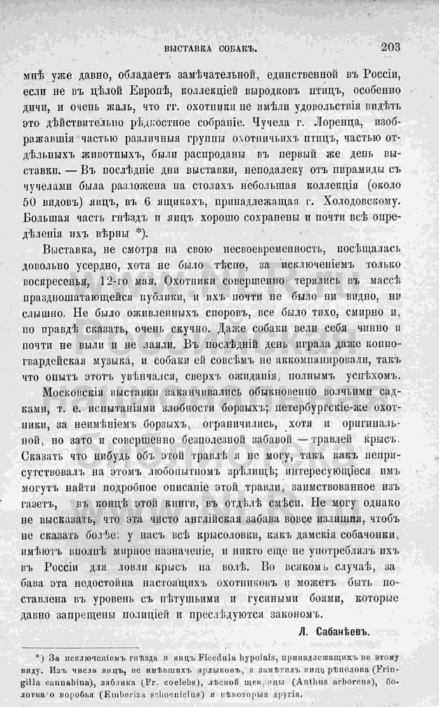 Отчёт Сабанеева Л.П. о первой выставке в Санкт-Петербурге. Журнал "Природа и Охота". 1878г.