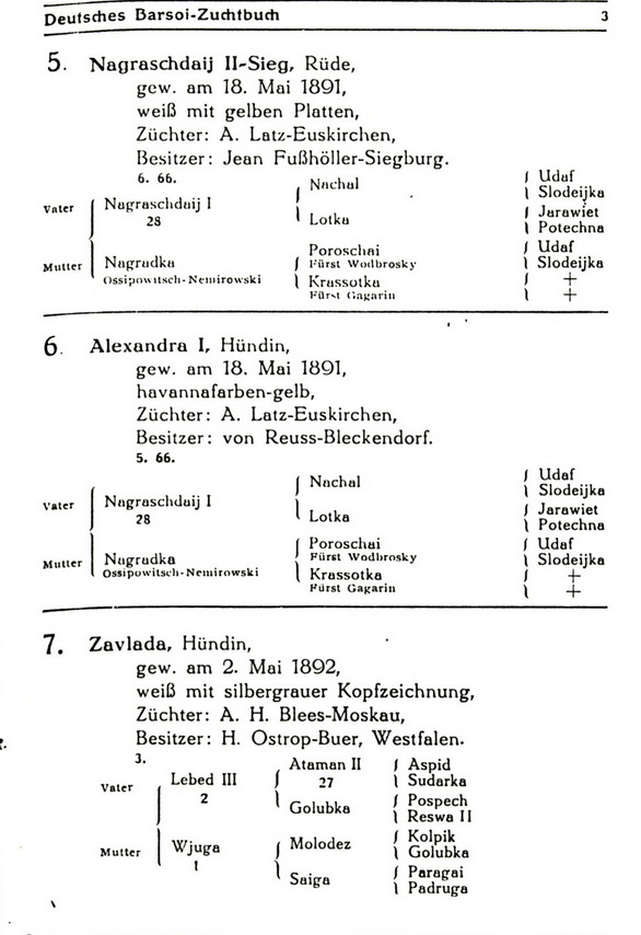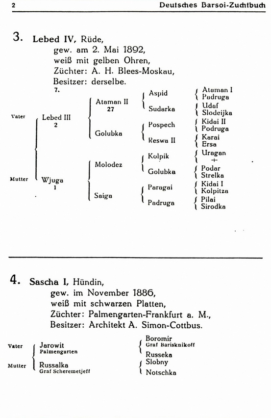 Die russischen Vorfahren im Deutsches Batsoi-Zuchtbuch