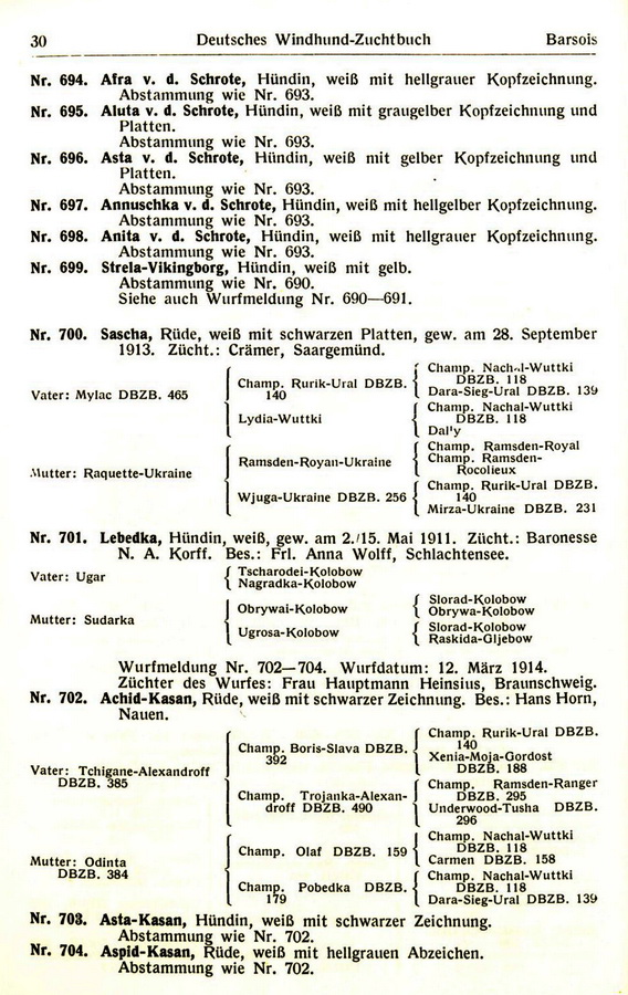 Database of borzoi pedigrees