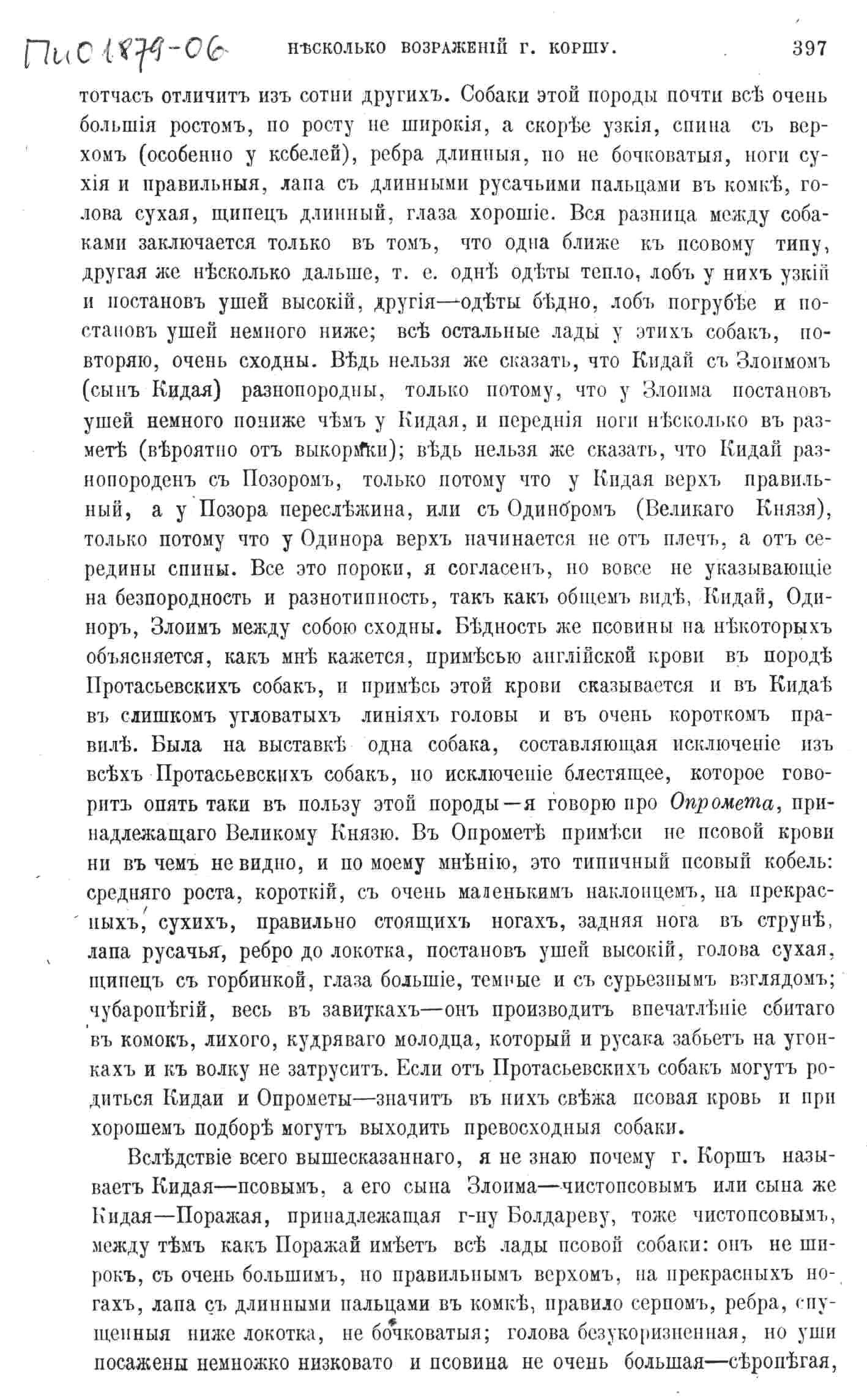 Несколько возражений г. Коршу по поводу описания собак 4-0й очередной выставки.