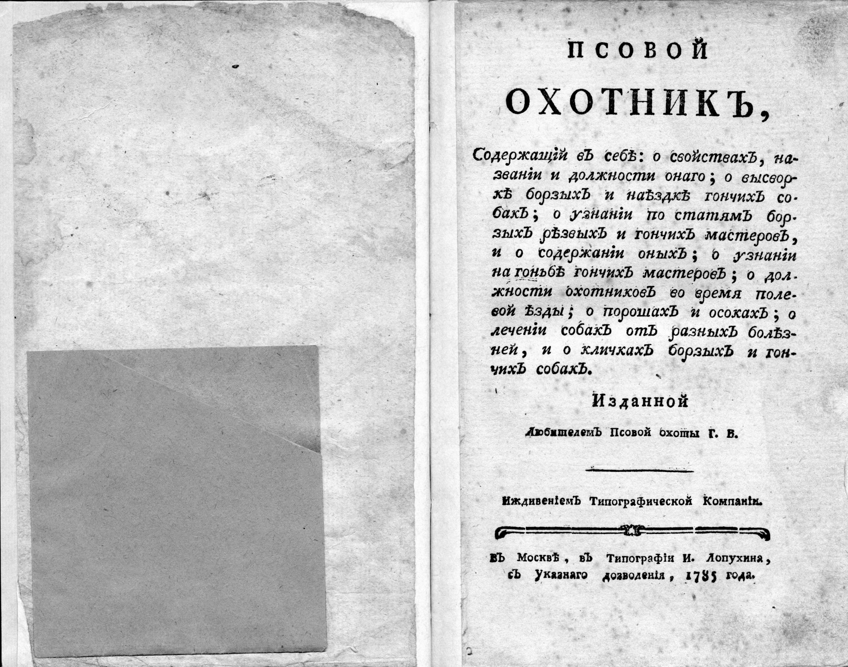 Любитель псовой охоты Г.В. "Псовый Охотник." 1785г.